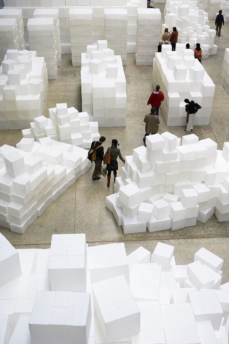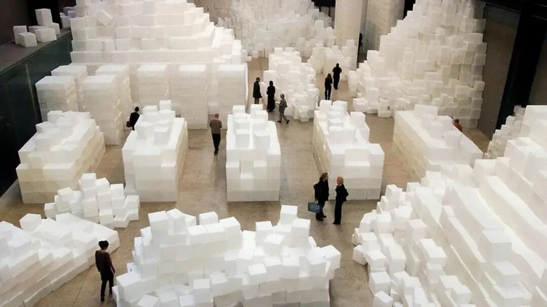 Rachel Whiteread 的《Embankment》则从“盒子”本身出发——她使用成千上万个塑料模具还原纸箱的内部空间,把那些曾经承载物件的空壳堆叠为静默的纪念碑。这些无法开启的“箱体”,似乎在强调缺席与记忆的存在。